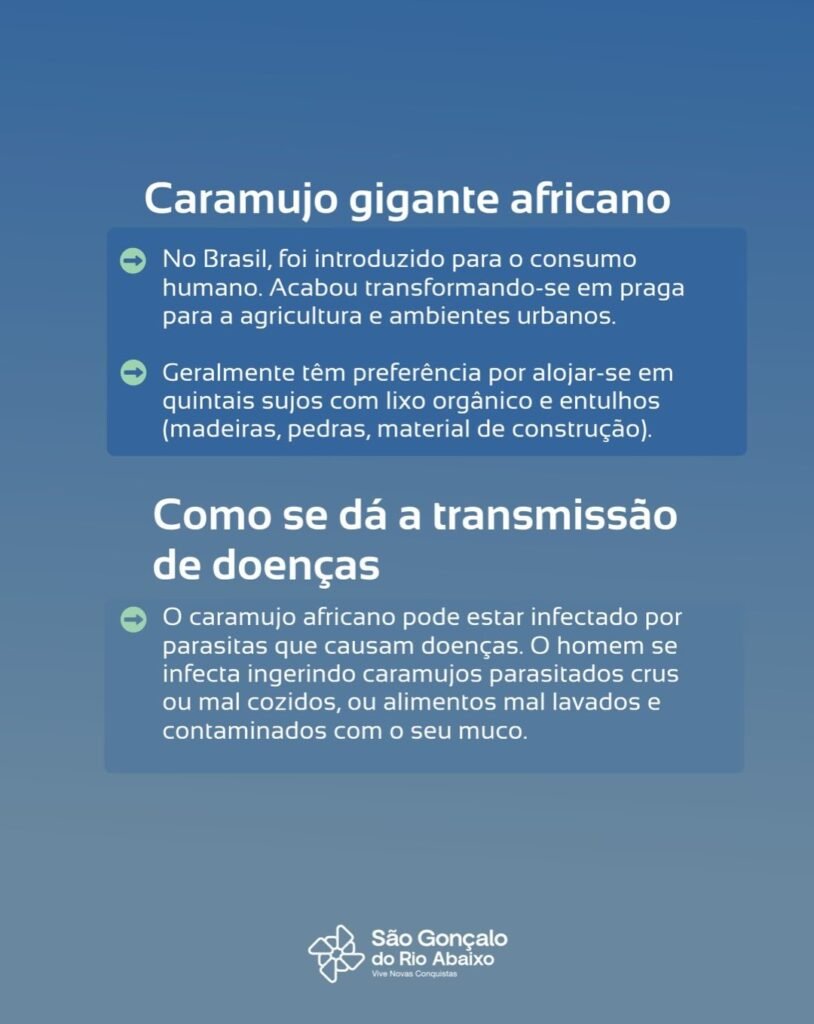 Atenção! O caramujo africano é uma espécie invasora que pode causar sérios danos ao meio ambiente e à saúde pública. Ele se reproduz rapidamente e pode transmitir doenças.